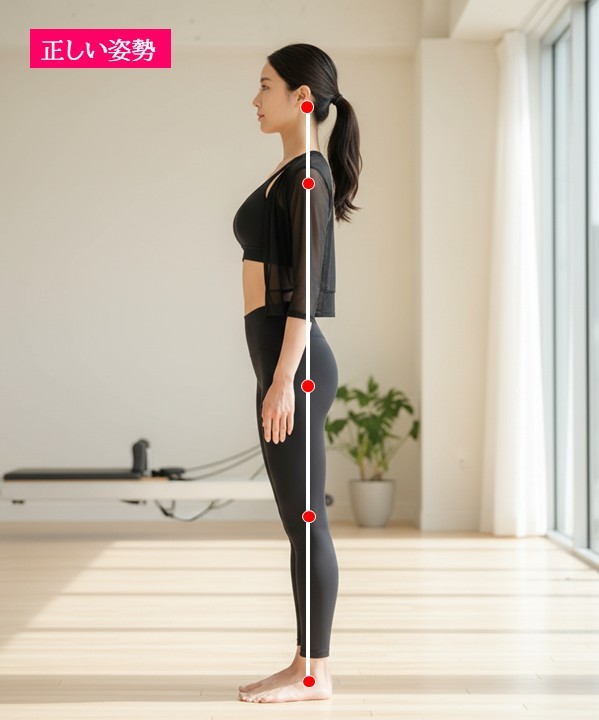 美しい姿勢とは、耳・肩・股関節・膝・くるぶしが一直線になっている状態です。
