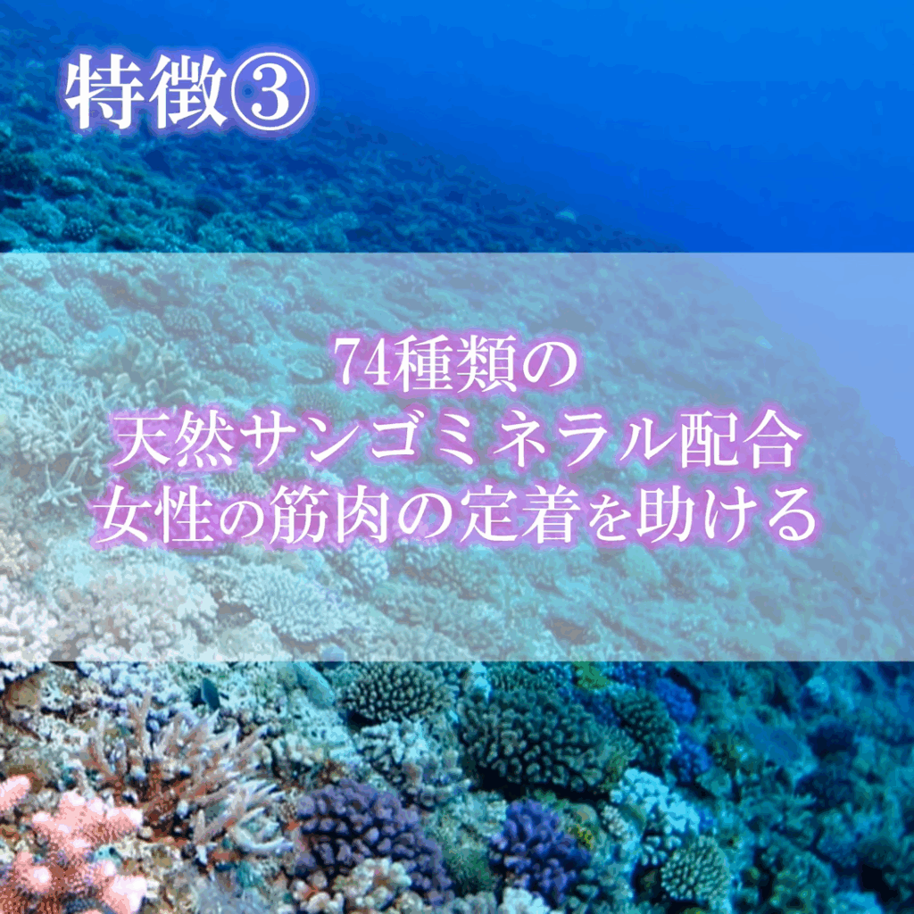 タンパク質の定着をサポート | 女性の美しさやコンディションを整える天然ミネラル。 | 沖縄県産サンゴミネラルを配合。糖質・脂質を徹底カット。筋肉がつきづらい女性におすすめ。 |